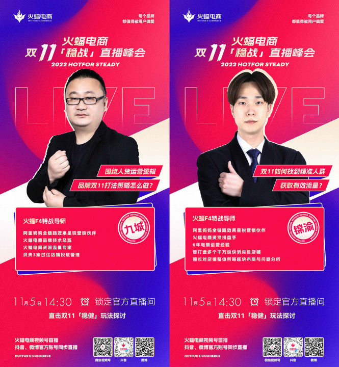 11月5日14:30,敬請關注火蝠電商視頻號,與特戰導師們一起「穩戰」雙十一。